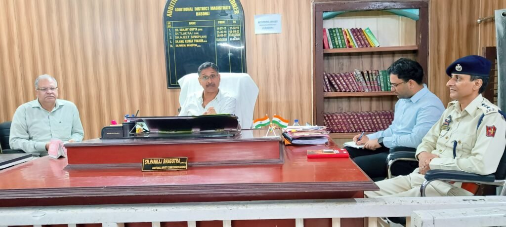 बहसोली, 19 सितम्बर : नवरात्रि पर्व को लेकर बहसोली में अतिरिक्त उपायुक्त (एडीसी) पंकज भगोत्रा की अध्यक्षता में समीक्षा बैठक हुई। बैठक में मंदिरों और रामलीला ग्राउंड की तैयारियों पर चर्चा की गई।
